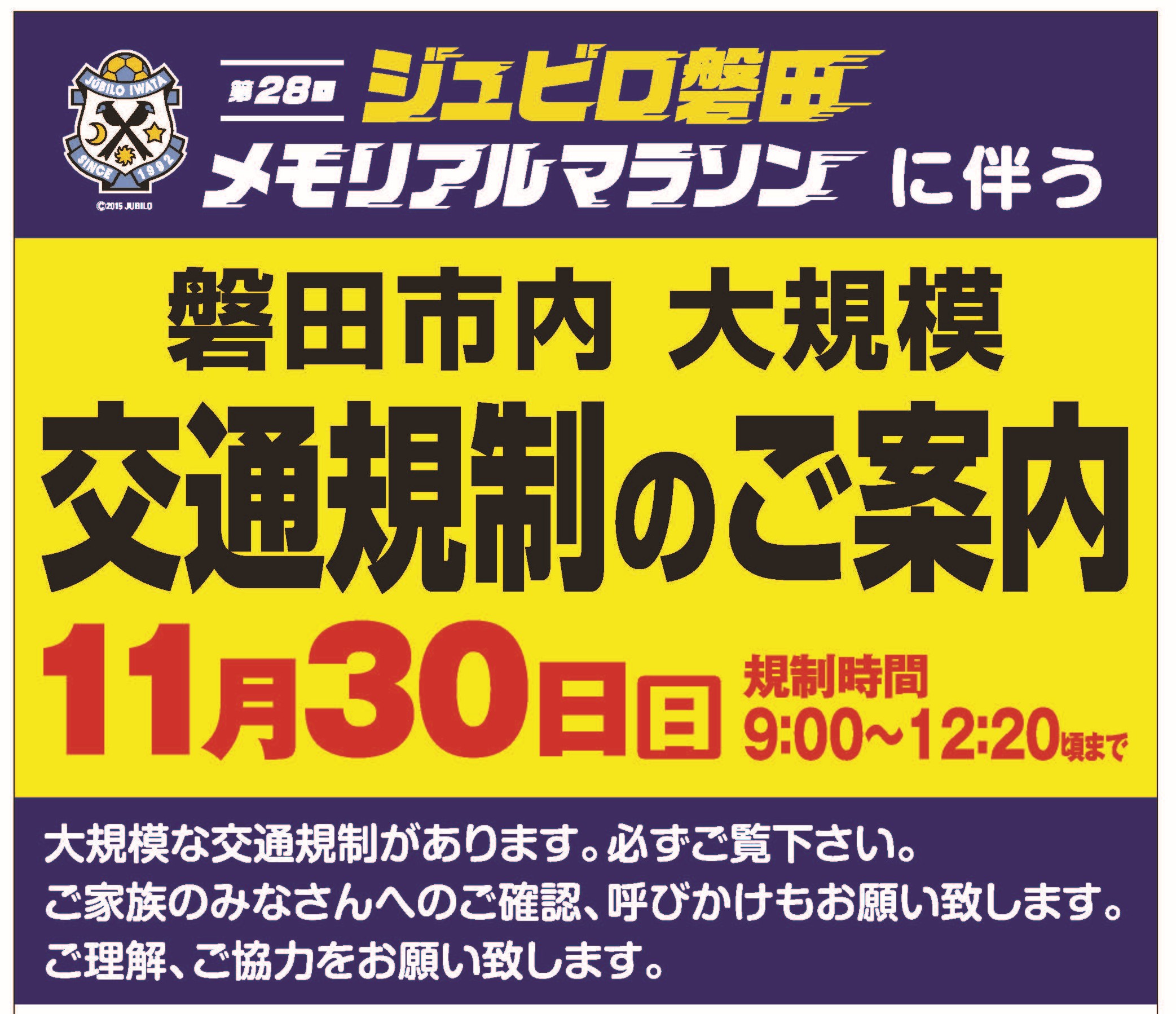 11/30 ジュビロ磐田メモリアルマラソンに伴う交通規制について